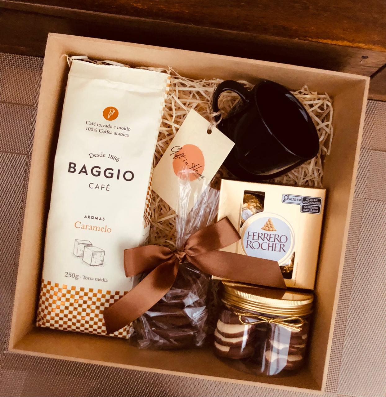 • 1 Caixa de Bombons Ferrero Rocher (50g): Bombons clássicos com camadas crocantes e um recheio cremoso de avelã, para adoçar ainda mais seu momento de café.