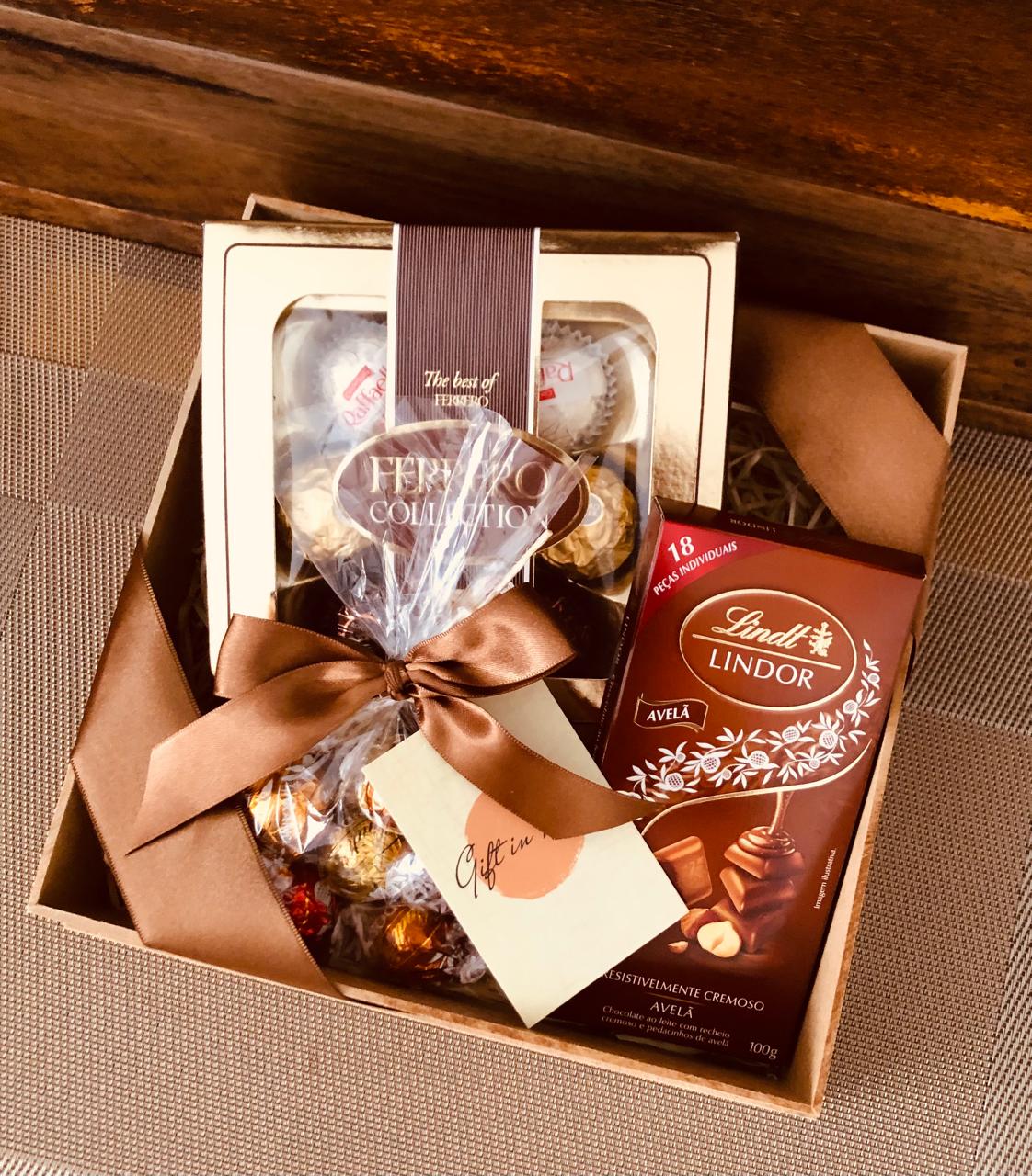 A Cesta de Chocolate Delicatto foi criada para os verdadeiros apreciadores de chocolate. Com uma seleção refinada de chocolates premium das renomadas marcas Ferrero e Lindt, essa cesta é perfeita para presentear em ocasiões especiais ou para proporcionar um momento de indulgência. Delicada e sofisticada, a Delicatto combina texturas e sabores inconfundíveis que encantam o paladar e elevam qualquer ocasião.