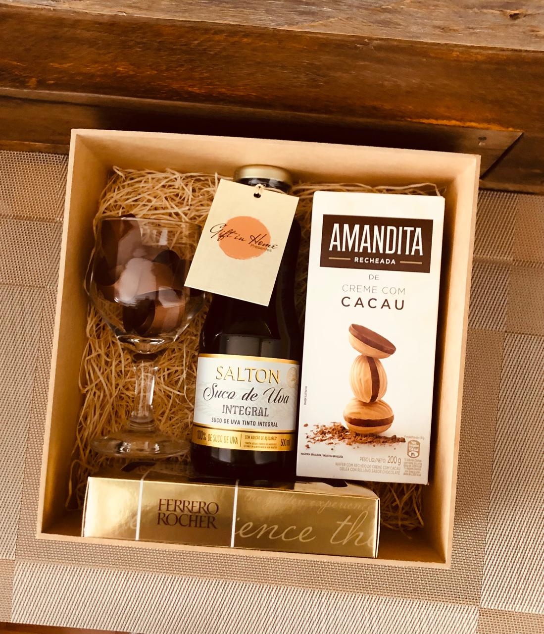 A Cesta de Suco Golden Experience traz uma combinação elegante e deliciosa para quem deseja surpreender com um presente refinado. Unindo o sabor puro do suco de uva 100% natural a biscoitos e chocolates finos, essa cesta é ideal para ocasiões especiais ou para transformar qualquer momento em uma experiência única e cheia de sabor.