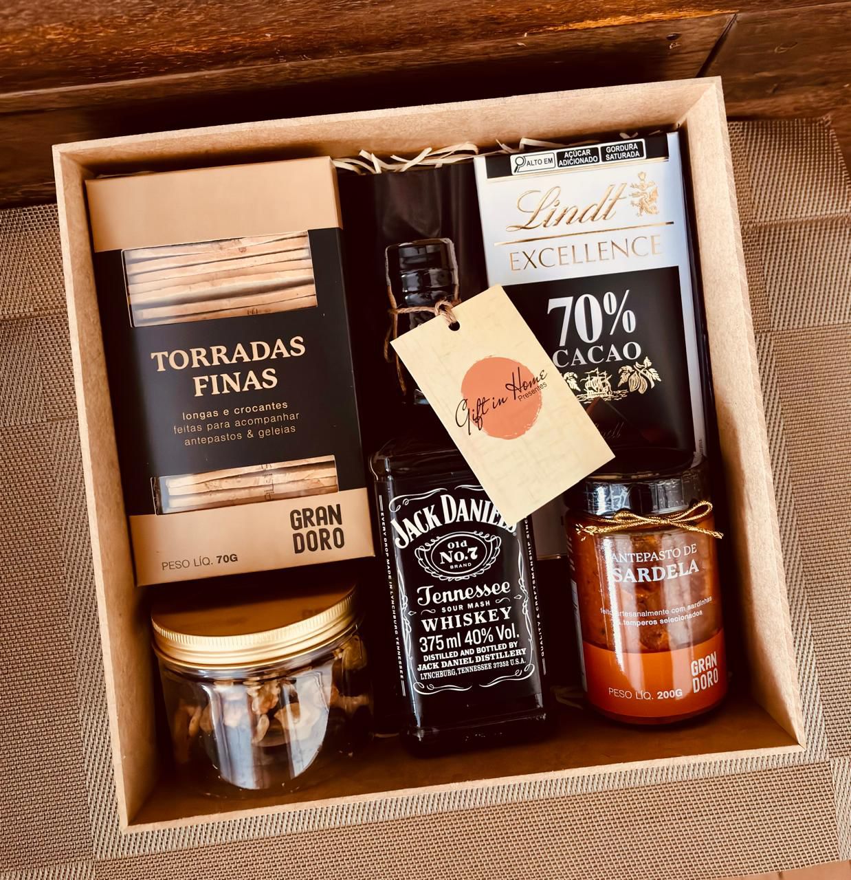 A Cesta de Whisky Dark e Nuts foi criada para quem aprecia sabores intensos e experiências de degustação refinadas. Combinando whisky icônico, chocolate premium e petiscos selecionados, ela entrega uma composição equilibrada e cheia de personalidade.